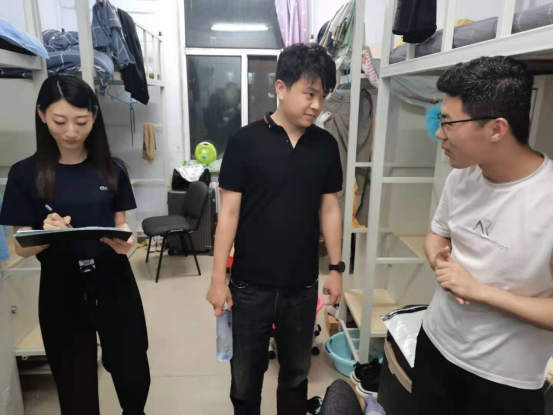 暑假前夕,为了保障暑期寝室安全,加强员工宿舍管理,提高研究生们的寝室安全意识,2021年7月1日,太阳成集团tyc122cc组织开展暑假前寝室卫生检查工作,辅导员张瑛、曲艺老师带领研究生会干事,对研究生六公寓、七公寓、九公寓和十二公寓的寝室安全和卫生情况进行了一次全面的检查。